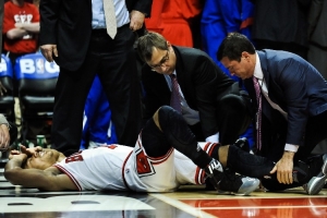 2012年季后賽首輪G1,公牛對(duì)陣76人,德里克·羅斯在比賽最后時(shí)刻突破時(shí)受傷,在跳起后落地時(shí)遭遇了左膝十字韌帶撕裂,羅斯也因此賽季報(bào)銷并缺席了之后的2012-13賽季。