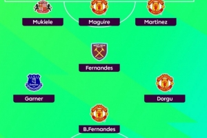 中場(chǎng):馬特烏斯·費(fèi)爾南德斯(西漢姆聯(lián))、詹姆斯·加納(埃弗頓)、B費(fèi)(曼聯(lián))、多爾古(曼聯(lián))