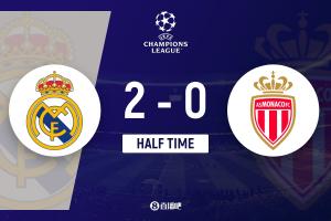 上半場補時2分鐘,皇馬2-0摩納哥。