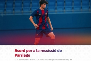 體育資訊1月21日訊 巴薩官方宣布和B隊(duì)20歲中場帕列戈(Marcos Parriego)解約。