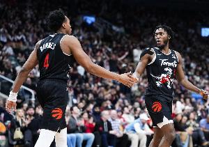 本場(chǎng)比賽,猛龍的進(jìn)攻打得行云流水,全隊(duì)共送出多達(dá)42次助攻,這一數(shù)據(jù)能夠排到隊(duì)史第三位(前兩位分別是44次和43次),同時(shí)也刷新了球隊(duì)的賽季助攻數(shù)紀(jì)錄,其中巴恩斯和奎克利兩人本場(chǎng)的助攻都上雙。