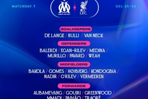 體育資訊1月21日訊 北京時(shí)間明天凌晨,馬賽將在歐冠聯(lián)賽階段第7輪比賽中主場(chǎng)對(duì)陣?yán)锲?,馬賽公布了此役的球員名單。
