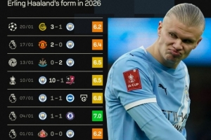 本場(chǎng)比賽哈蘭德未能打破進(jìn)球荒,本場(chǎng)賽后評(píng)分也僅有6.2分。他在2026年的7場(chǎng)各項(xiàng)賽事僅是在對(duì)陣布萊頓比賽中打進(jìn)一粒點(diǎn)球,且7場(chǎng)比賽sofa評(píng)分最高也只有7分。