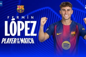 體育資訊1月22日訊 歐冠聯(lián)賽階段第7輪,巴塞羅那客場4-2戰(zhàn)勝布拉格斯拉維亞,賽后,費爾明被評為全場最佳球員。