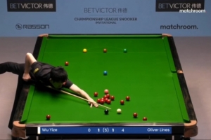斯諾克冠軍聯(lián)賽第六小組第一比賽日,中國球員吳宜澤3-1戰(zhàn)勝奧利弗·萊恩斯,第三局比賽,吳宜澤打出生涯首桿147。