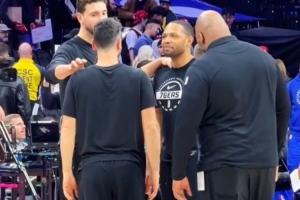 體育資訊1月23日訊 火箭客場挑戰(zhàn)76人,賽前球隊官方曬出舊將埃里克·戈登與球隊老熟人們寒暄的視頻。