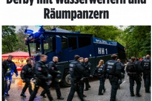約1000名警力已為這場(chǎng)對(duì)決待命,其中包括約300名BFE(證據(jù)保全與逮捕部隊(duì))特警。此次漢堡警方的支援力量完全來自北部聯(lián)合體(不來梅、梅克倫堡-前波美拉尼亞和石勒蘇益格-荷爾斯泰因)。在首回合比賽(圣保利2-0取勝)中,還曾調(diào)用了巴伐利亞的特警部隊(duì)。直升機(jī)將從空中監(jiān)控局勢(shì),地面則配備了高壓水炮車和清障車以防緊急情況。