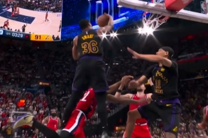 GIF-斯瑪特和米勒搶籃板,后者被吹犯規(guī);快船挑戰(zhàn)成功,斯瑪特先犯規(guī)