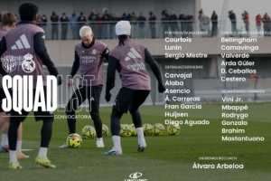 體育資訊1月23日訊 本輪西甲皇馬將在客場(chǎng)迎戰(zhàn)比利亞雷亞爾,球隊(duì)官方也公布了本場(chǎng)大名單,迪亞斯、羅德里戈回歸,瓊阿梅尼累積黃牌停賽。具體如下: