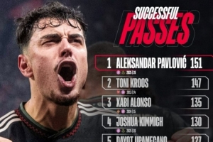體育資訊1月23日訊 在本輪歐冠拜仁2-0擊敗圣吉羅斯的比賽中,帕夫洛維奇完成151次成功傳球,此數(shù)據(jù)創(chuàng)造了拜仁球員在單場(chǎng)歐冠紀(jì)錄,以下為具體榜單: