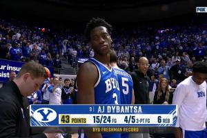 單場43分也讓他超越了丹尼·安吉成為楊百翰大學(xué)的大一新生單場得分王。