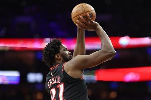 本場(chǎng)比賽,76人球星恩比德表現(xiàn)出色,打了36分鐘21投13中,三分5中3、罰球12中9空砍全場(chǎng)最高38分外加11籃板5助攻1蓋帽,有4失誤,正負(fù)值-3。