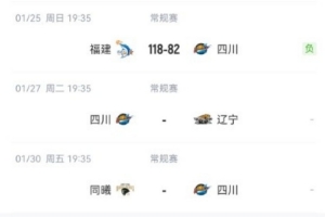 本場失利后,四川本賽季已經(jīng)遭遇19連敗,還未取得一場勝利,接下來他們將先后對陣遼寧、同曦、新疆和山西。
