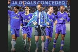 切爾西球迷號(hào)通過社媒曬照:“單賽季僅丟15球,令人難以置信,我們的隊(duì)長、領(lǐng)袖、傳奇@約翰·特里領(lǐng)銜締造的紀(jì)錄依然無人打破。特里還會(huì)提及,在他和切赫同時(shí)在場時(shí)僅丟了13球?!彼{(lán)軍傳奇隊(duì)長約翰·特里也在賽后通過社媒轉(zhuǎn)發(fā)了該動(dòng)態(tài)。