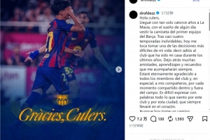 盡管今天我選擇踏上另一條道路,但無論身在何處,我都會(huì)像一名普通球迷一樣繼續(xù)支持你們,為你們加油。巴薩和拉瑪西亞不僅是我成長道路上的重要部分,更將永存在我的生命之中。感謝你們所做的一切。