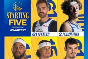 本場比賽勇士庫里、追夢等7人缺席,本場比賽首發(fā)陣容為:斯潘塞、穆迪、波斯特、波杰姆斯基、桑托斯。