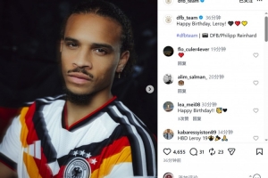 德國(guó)隊(duì)官方社媒曬出薩內(nèi)的照片,配文:“生日快樂(lè),勒魯瓦!”