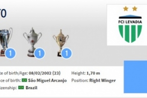 若昂·佩德羅現(xiàn)年23歲,主要司職右邊鋒,2023年加盟塔林利瓦迪亞隊(duì),一共為球隊(duì)出戰(zhàn)89次,貢獻(xiàn)22球17次助攻,德轉(zhuǎn)當(dāng)前身價32.5萬歐。