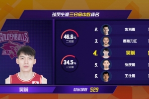 此役過后,吳前CBA生涯三分球命中總數(shù)達到1276個,超越張慶鵬獨占CBA歷史三分榜第4位。