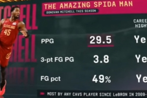米切爾場均29.5分是自2009-10賽季的詹姆斯(29.7分)以來隊(duì)史最高場均得分