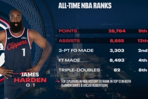 快船戰(zhàn)勝爵士,轉(zhuǎn)播方曬出哈登數(shù)據(jù) :