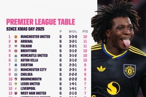體育資訊1月28日訊 據(jù)Opta統(tǒng)計(jì),自圣誕節(jié)以來,沒有任何球隊(duì)在英超的勝率超過50%,曼聯(lián)拿到12分同期最多。