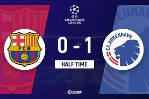 上半場補(bǔ)時1分鐘,巴薩0-1哥本哈根。
