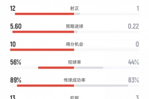 預(yù)期進(jìn)球——5.6比0.22