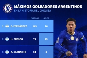 據(jù)德國轉(zhuǎn)會市場統(tǒng)計,恩佐為切爾西出戰(zhàn)149場比賽,打進(jìn)26球,超越克雷斯波,成為隊史進(jìn)球最多阿根廷球員。