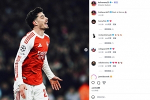 阿森納也在歐冠的聯(lián)賽階段保持8戰(zhàn)全勝。哈弗茨也在賽后通過(guò)社媒曬出自己的慶祝照,并配文:“回到主場(chǎng)???”。