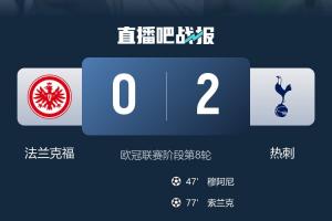 體育資訊01月29日訊 歐冠聯(lián)賽階段第8輪戰(zhàn)罷,熱刺2-0力克法蘭克福,以聯(lián)賽階段第4的成績直通15強。球隊在本屆歐冠聯(lián)賽階段8輪5勝2平1負。