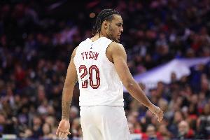 此役,杰倫·泰森出戰(zhàn)29分23秒,投籃15中8,三分7中3,罰球1中1,得到20分6籃板6助攻1搶斷,正負值+29。