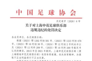 一、扣除上海申花足球俱樂(lè)部 2026 賽季相應(yīng)的職業(yè)聯(lián)賽積分 10分;