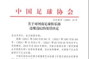 關(guān)于對(duì)河南足球俱樂(lè)部違規(guī)違紀(jì)的處罰決定