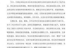 足協(xié)認定,2017年至2018年期間,長春亞泰足球俱樂部違背體育道德、喪失體育精神、為謀取不正當利益進行不正當交易。