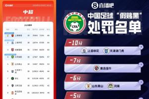 我們參照去年的中超積分榜,扣分后的中超排名情況如下。(加粗為未扣分)