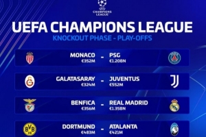 體育資訊1月30日訊 歐冠淘汰賽附加賽對(duì)陣已經(jīng)出爐,《轉(zhuǎn)會(huì)市場(chǎng)》也列出了各隊(duì)的德轉(zhuǎn)身價(jià)情況?;蜀R和巴黎均超過(guò)10億歐元,博德閃耀和卡拉巴赫均未破億。
