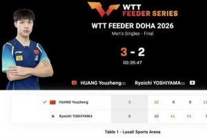體育資訊2月1日訊 WTT支線賽多哈站男單決賽,???黃友政3-2戰(zhàn)勝吉山僚一,奪得冠軍!