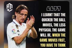 莫德里奇接受采訪時說道:“我意識到,球移動得越快,比賽的身體對抗就越少。當(dāng)比賽節(jié)奏快時,你必須快速思考,而當(dāng)比賽節(jié)奏慢下來時,就會給身體素質(zhì)好的球員創(chuàng)造機(jī)會?!?/p>