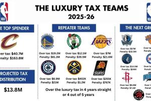體育資訊02月01日訊 ESPN知名薪資專家Bobby Marks更新動(dòng)態(tài),曬出一張2025-26賽季NBA球隊(duì)奢侈稅情況。