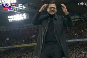 英超第24輪,切爾西3-2西漢姆聯(lián)。比賽補(bǔ)時(shí)階段,帕爾默攻門打出超級(jí)超級(jí)離譜沖天炮,羅塞尼爾抱頭戴上痛苦面具。