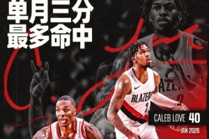 開拓者官微寫道:“來看看樂福在一月的(40記)三分表現(xiàn)?? 他在一月單月三分命中數(shù)排名開拓者隊史新秀第二位,僅次于達米安·利拉德(42記)”