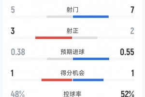 體育資訊2月1日訊 本輪英超,曼聯(lián)半場(chǎng)戰(zhàn)罷1-0領(lǐng)先富勒姆,以下為雙方半場(chǎng)數(shù)據(jù)對(duì)比: