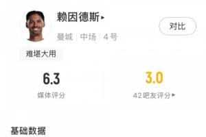 體育資訊02月02日訊 英超第24輪,熱刺主場2-2戰(zhàn)平曼城,本場比賽曼城中場賴因德斯替補(bǔ)出場20分鐘,發(fā)揮平平。