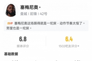 體育資訊2月2日訊 英超第24輪焦點(diǎn)戰(zhàn),曼城客場(chǎng)2-2熱刺。塞梅尼奧首發(fā)出戰(zhàn),打進(jìn)1粒進(jìn)球,6次過人0成功,18次丟失球權(quán)全場(chǎng)最多,評(píng)分6.8。