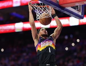 本賽季,布克場均25.4分4籃板6.2助攻0.9搶斷,太陽30勝19負(fù)西部第六。