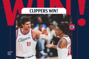 賽后快船官方發(fā)布贏球海報,封面為洛佩斯和喬丹·米勒擊掌瞬間。