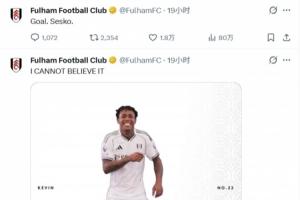 然而在富勒姆發(fā)布進(jìn)球賽訊僅一分鐘后,曼聯(lián)隨即依靠舍什科的進(jìn)球再度領(lǐng)先,富勒姆官推的狂歡瞬間化為沉寂。