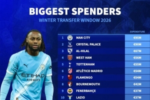體育資訊2月4日訊 冬季轉(zhuǎn)會窗已經(jīng)關(guān)閉,德國轉(zhuǎn)會市場盤點(diǎn)了足壇各隊(duì)引援花費(fèi)情況,曼城以9500萬歐居首,水晶宮以9000萬歐位居次席。