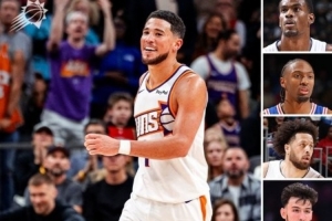 新星隊(duì)的陣容是:斯科蒂·巴恩斯、布克、康寧漢姆、杜倫、愛(ài)德華茲、霍姆格倫、杰倫·約翰遜、馬克西。